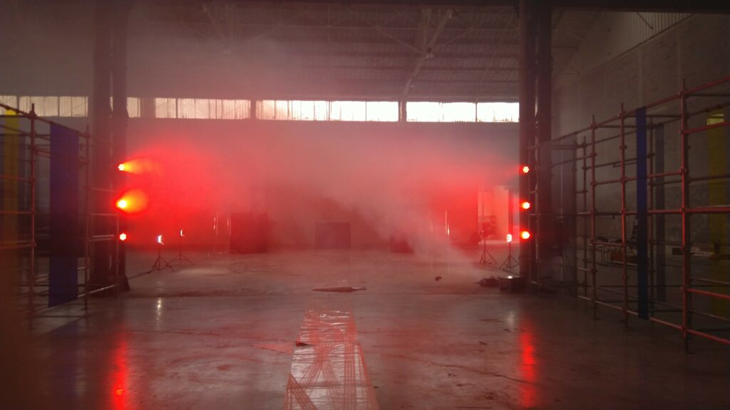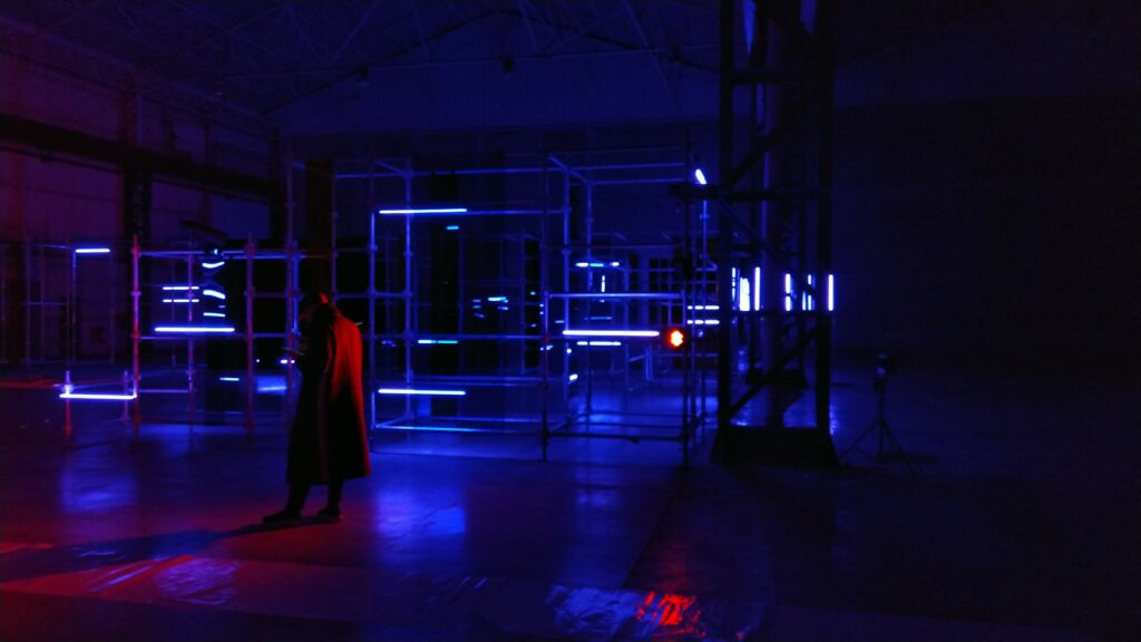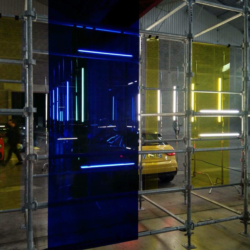 - Éclairage Scénographique : Déploiement de tubes LED Astera répartis sur la structure de chantier, pilotés via protocole DMX/Art-Net.