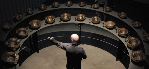 Damassama est une installation sculpturale et sonore monumentale. L’œuvre se présente sous la forme d’une structure composée de 24 de bols tibétains, créant une architecture de sons et de résonances. Le but était de permettre une interaction subtile et automatisée avec ces objets traditionnels pour générer un environnement sonore évolutif et immersif pour les visiteurs.