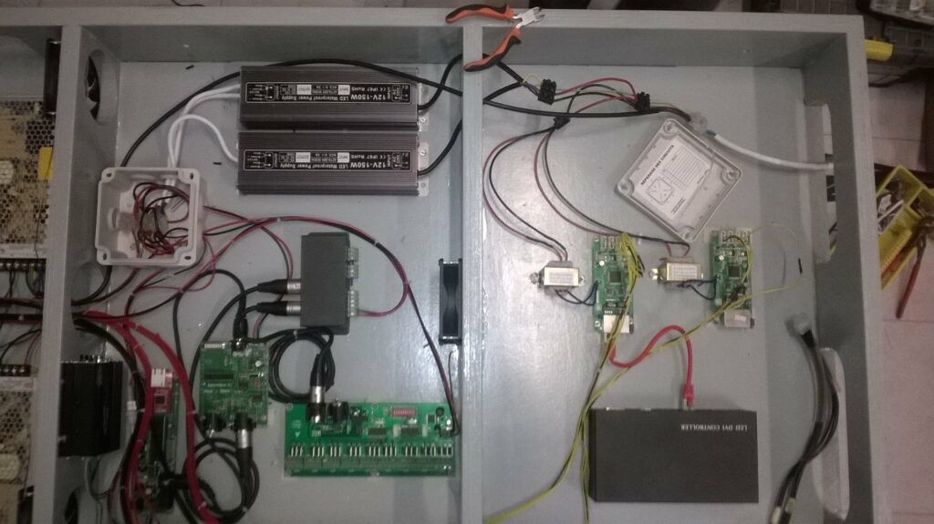 - Contrôle LED : Le pilotage des pixels était assuré par trois drivers DMXKing LeDMX4 Pro, permettant une gestion fluide des protocoles Art-Net vers SPI.