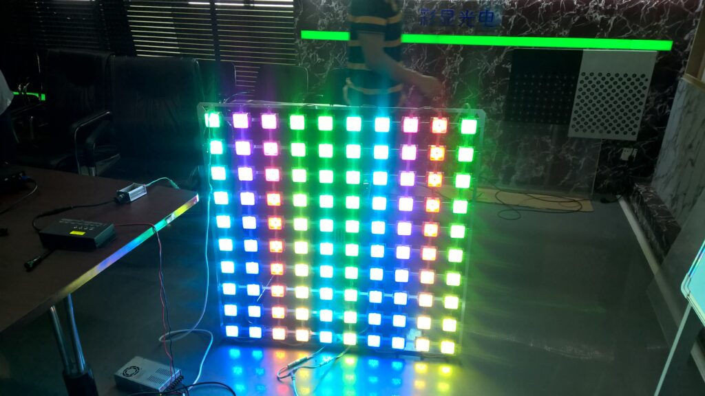 • Sourcing & Hardware : Matrice de LED 3W RGB haute puissance, choisies pour leur capacité à percer l’obscurité urbaine. Le pitch de 10 cm a été spécifiquement validé pour garantir une densité de points optimale sur une structure de cette envergure.