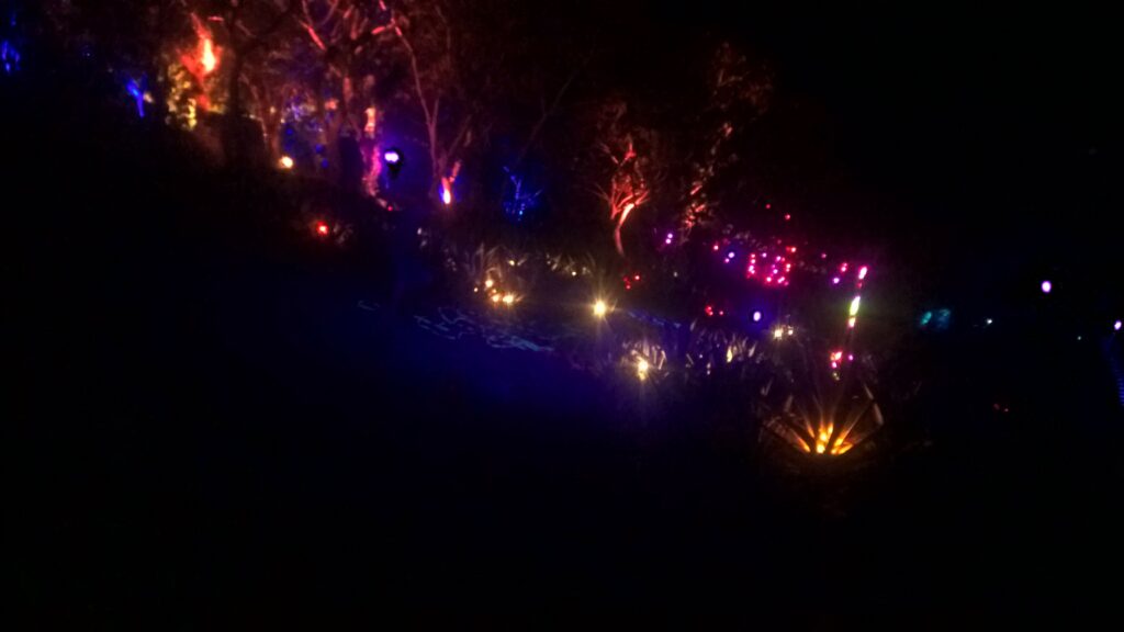 Le festival Porlwi by Nature avait pour ambition de célébrer la reconnexion entre l’homme et son environnement. Mon travail s’est concentré sur la mise en lumière du chemin serpentant jusqu’à la Citadelle. Le parcours était conçu comme une montée en puissance visuelle : des plantes exotiques discrètement illuminées tout au long du trajet, un vaste champ de barres LED créant une texture numérique organique, et enfin, un « Soleil » monumental trônant au bout de l’allée pour marquer l’arrivée au fort.
